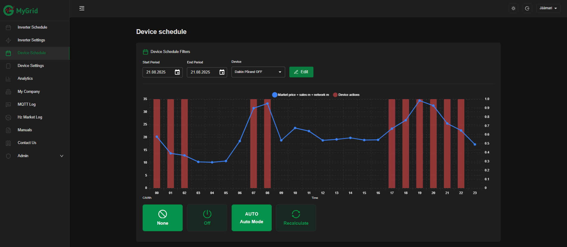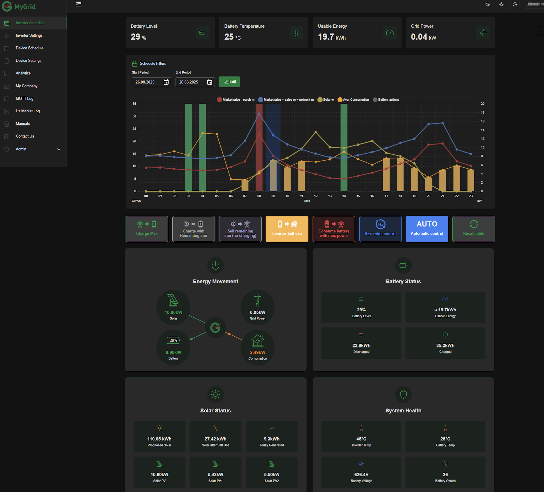 MyGrid on maailma funktsionaalseim ja nutikaim kodu elektrihaldustarkvara. Selle peamine eesmärk on aidata teil vähendada elektrikulusid, tehes nutikaid ja tõhusaid otsuseid energiahalduse kohta. MyGrid haldab teie kodu päikesepaneelide, akude, tarbimise ja võrguenergia süsteemi viisil, mis on teile kõige kasulikum.